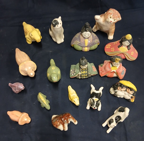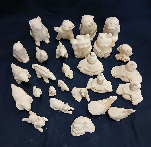 素焼きの作品に絵付けをします。